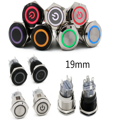 19mm 방수 금속 푸시 버튼 스위치 LED 라이트 블랙 순간 래칭 자동 자동차 엔진 PC 전원 스위치 레드 블루 그린 화이트