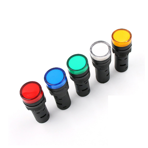 16mm 패널 마운트 신호 전원 Led 표시기 라이트 블루 그린 레드 화이트 옐로우 파일럿 램프 AC DC 12V 24V 220V AD16-16C